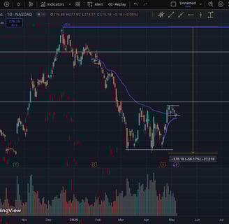 And now, the consolidating tightly {between $270 - $295} up against the top of the $220 - $295 horizontal range it's been in for two months.