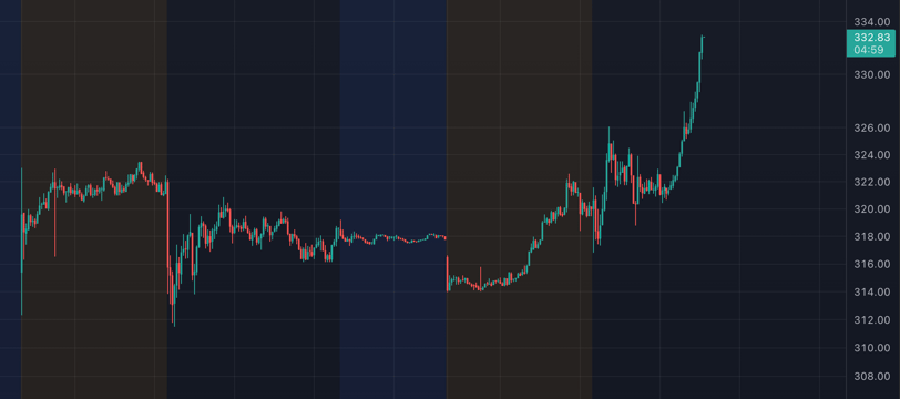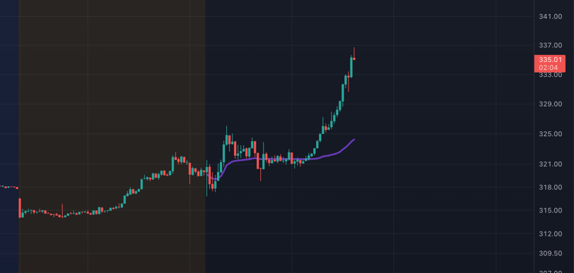 So I ended up selling 2/3 of the position at $327 and 1/3 at $335.