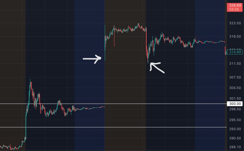 After the gap up to $315, the market revealed that it did in fact care about the $312/$1T level, as it bounced off of it pre-market, and on the open.
