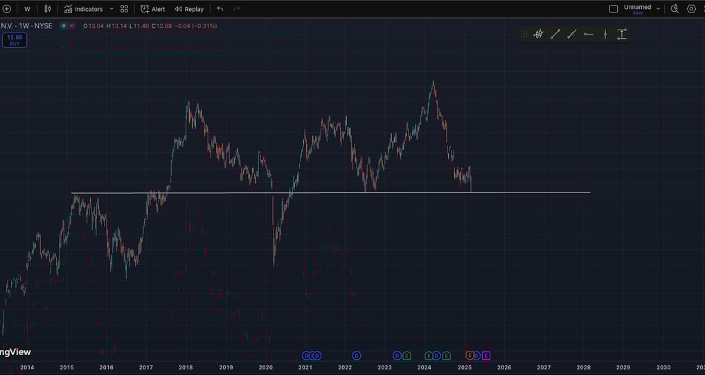 So I'm going to hold off until this week's candle closes before potentially buying, just to ensure that the bounce under $12 and off $11 is legitimate.